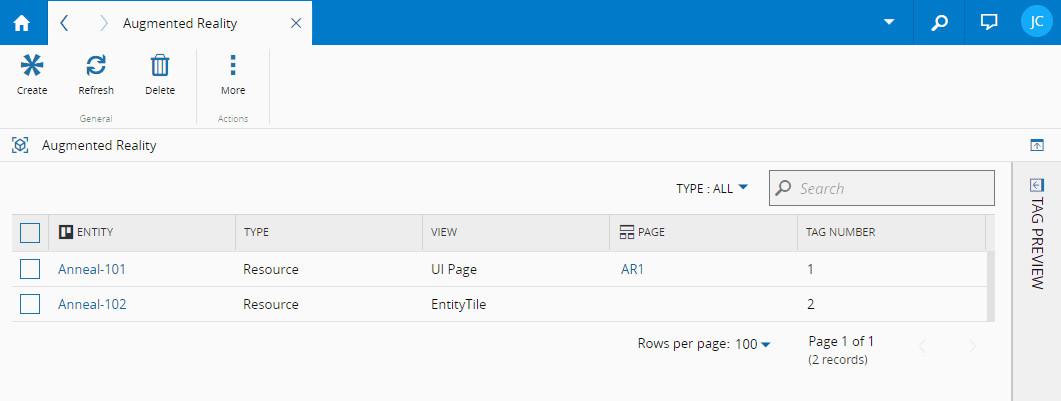 Augmented Reality Tags are created in the Administration menu, Augmented Reality entity. For more information, see the Augmented Reality (Administration) and Augmented Reality (System Widgets/) sections of the User Guide.
