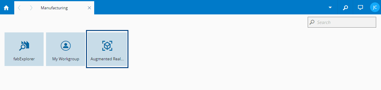 Augmented Reality can also be accessed from the Manufacturing menu, Augmented Reality entity.