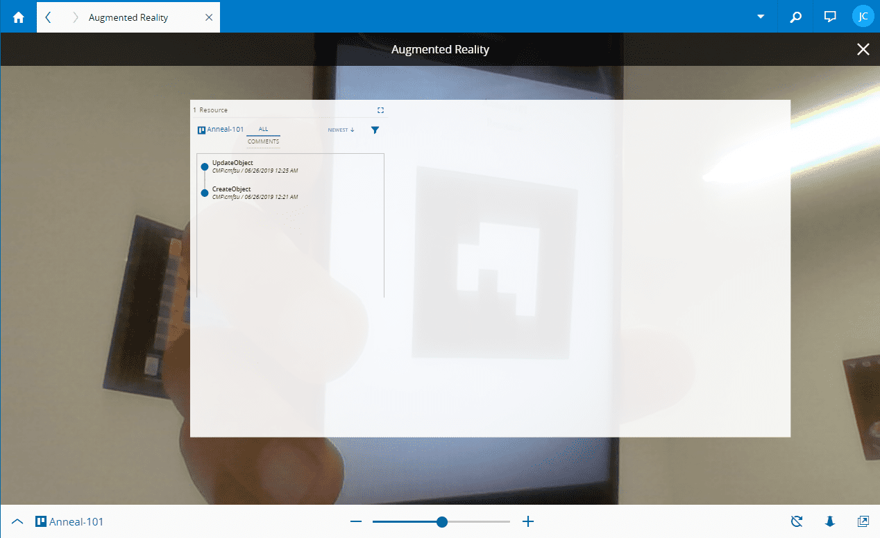 Augmented Reality is a mechanism to superimpose information on top of an object, as viewed through a device camera, for the purposes of visualization or interaction.