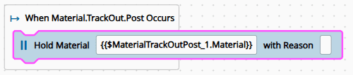 - The Material should be placed on hold, using the MES Material Task Hold task.