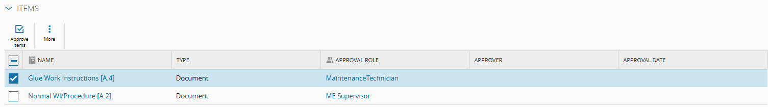 To change individual Approval Roles for a specific Change Set Item, within the same "Items" menu, it is needed to select the desired items and select "Manage Change Set Items".