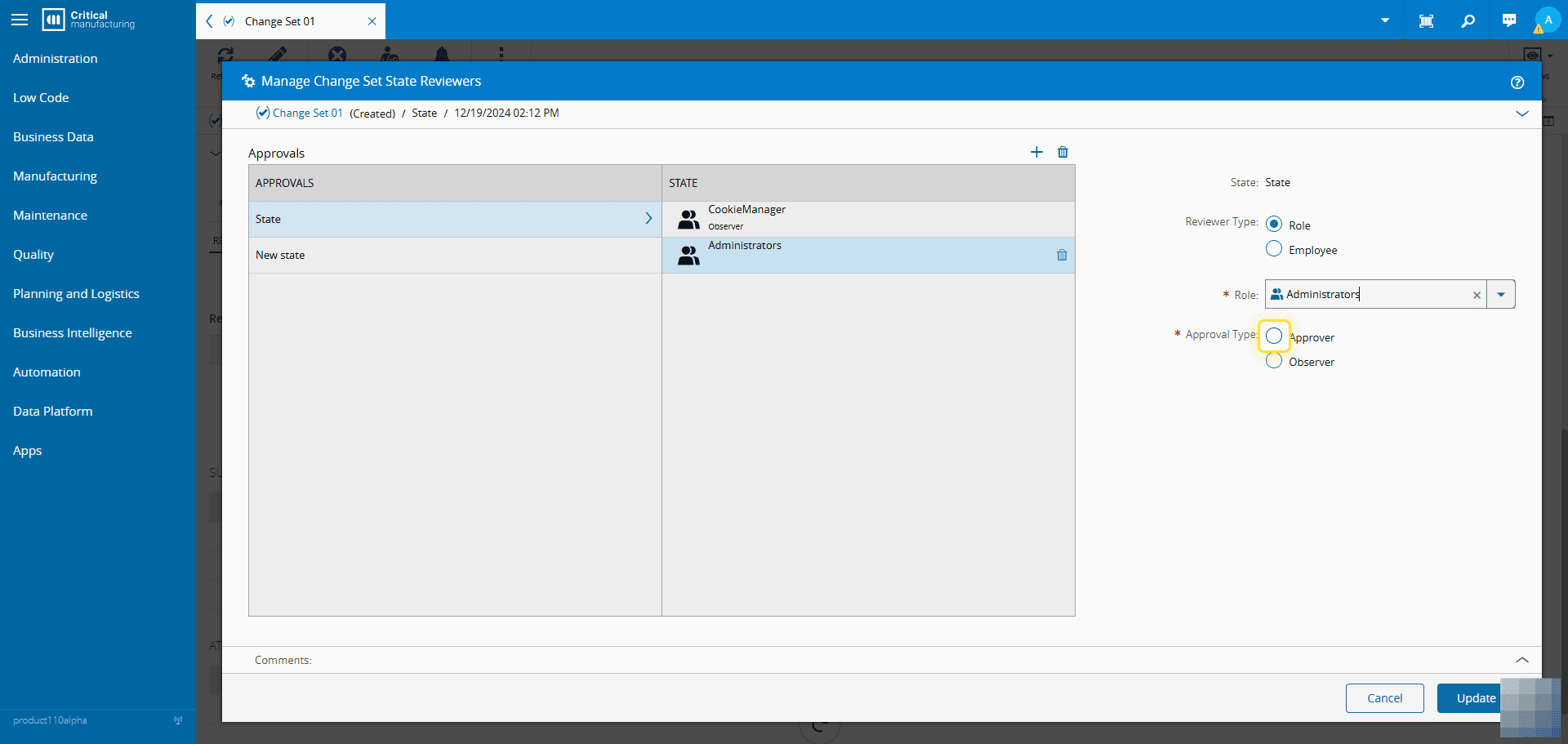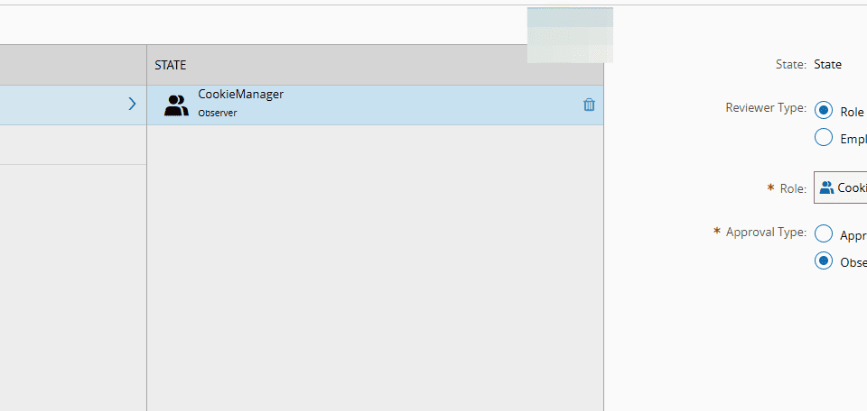When managing the information on state reviewers and adding a reviewer, the system asks for the Approval Role or Employee in the specific state to be set.