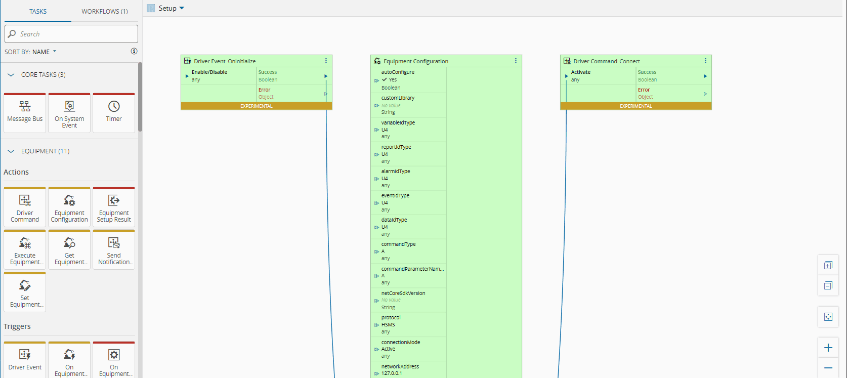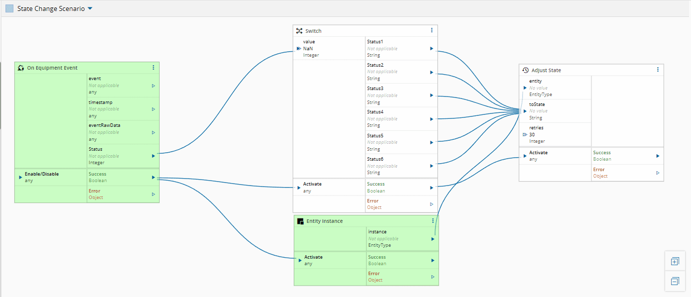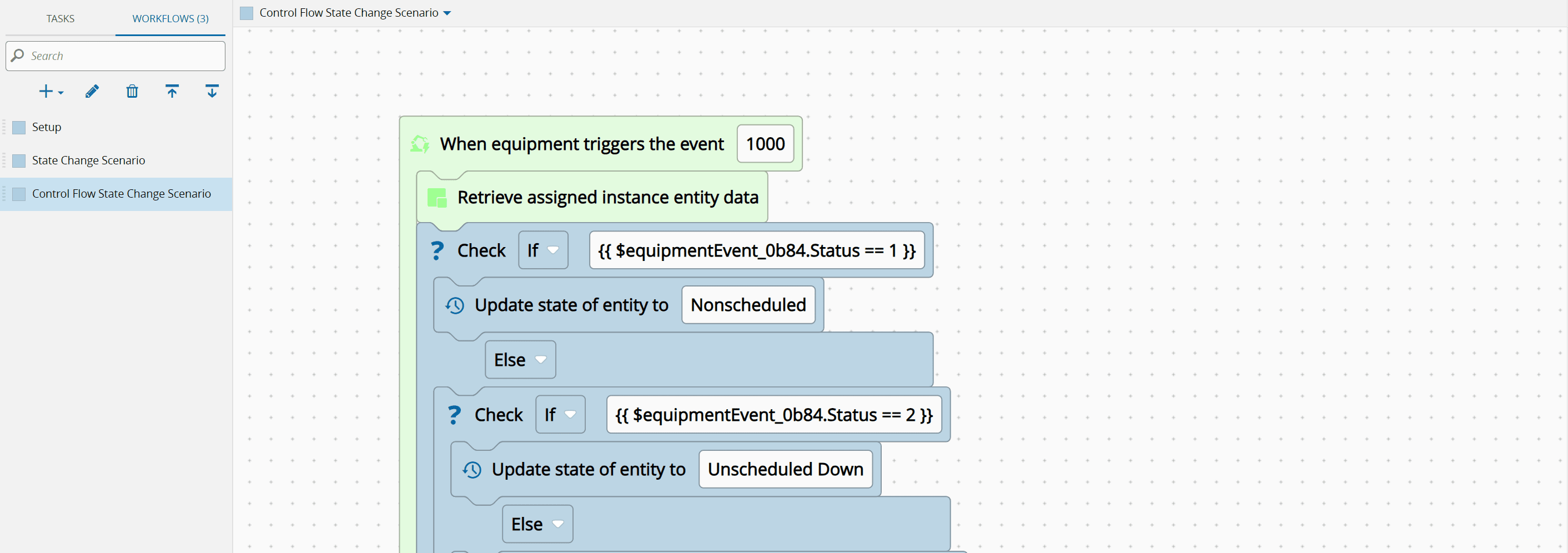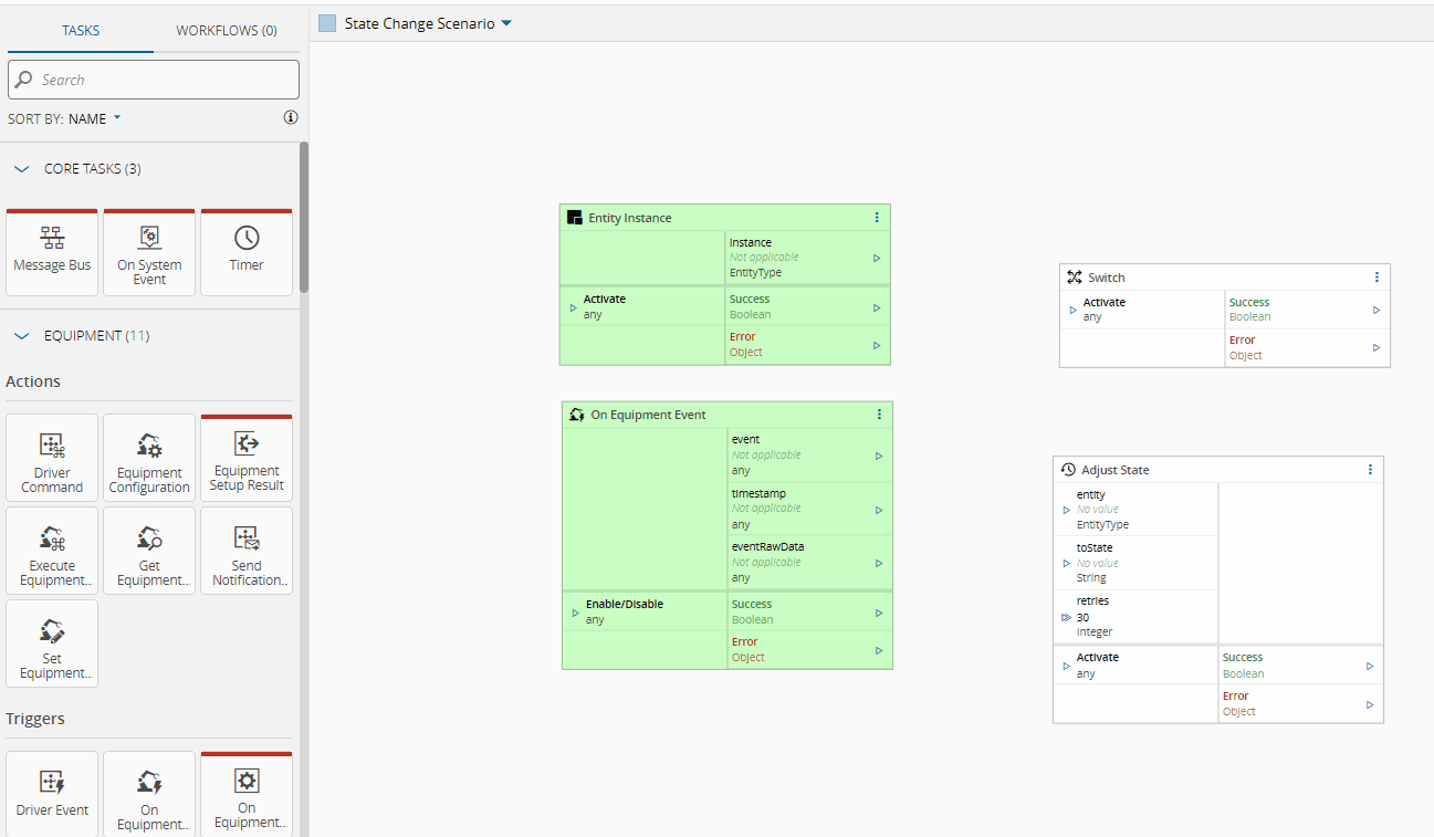 Now we can link the tasks together, in order to produce the desired result of detecting the change of the equipment status and map it to a SEMI E10 Resource State in the MES for the resource entity that will be associated to this controller: