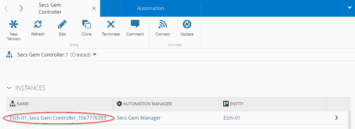 - Entity Instance (will represent the MES Resource entity in runtime)