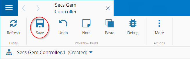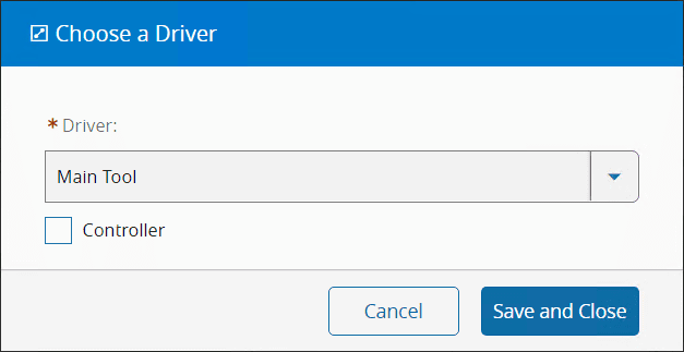 When adding the Entity Instance task, it will be asked for you to choose between the entity associated to one of the drivers or the entity associated to the controller. Choose the Main Tool driver and select the button Save and Close.