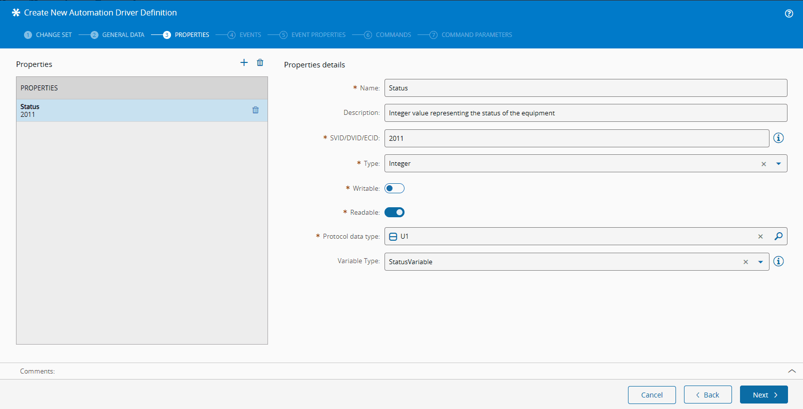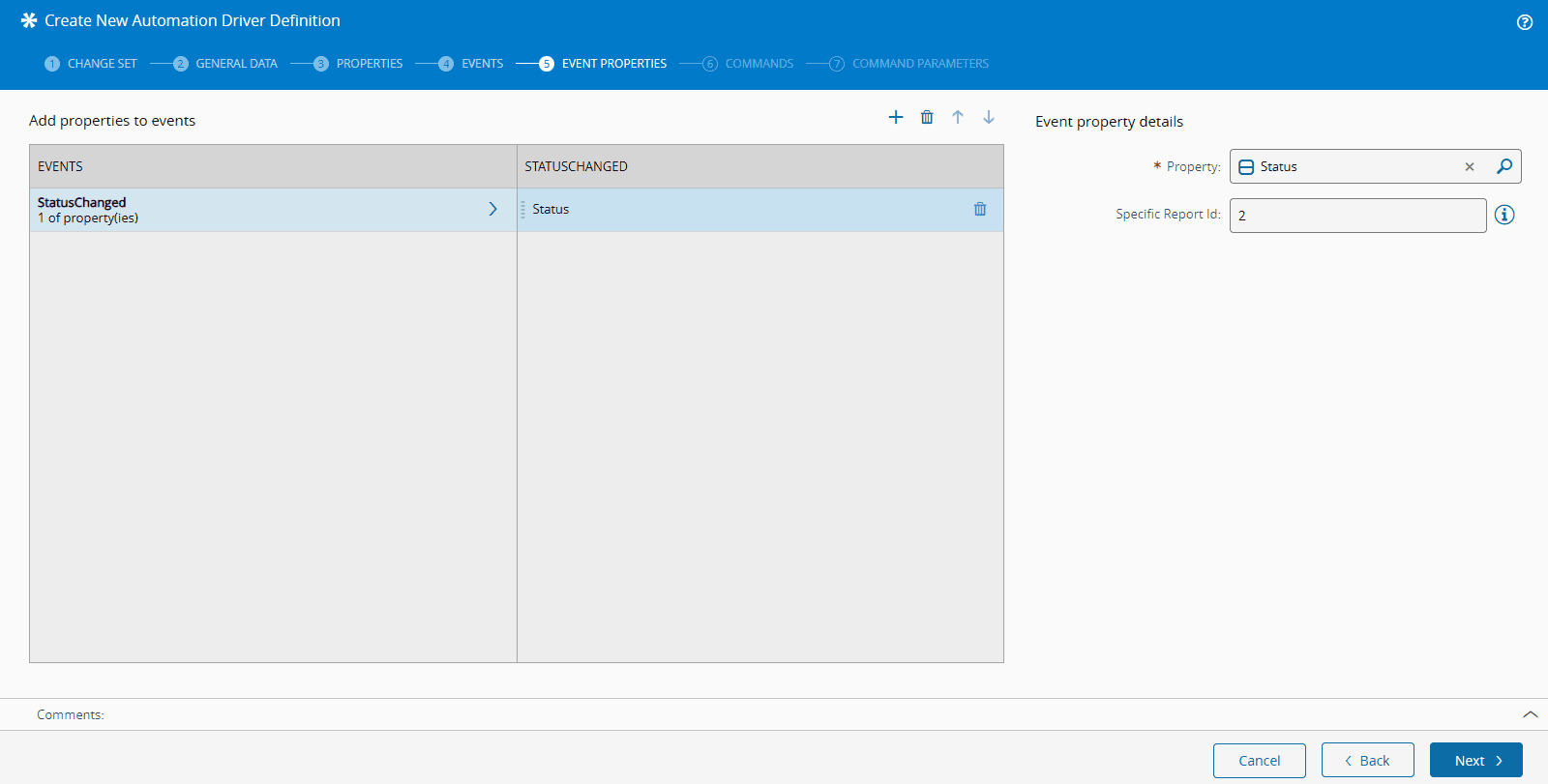 Notice that there is now one new output available - Status, as defined previously at the Automation Driver Definition for the StatusChanged event.