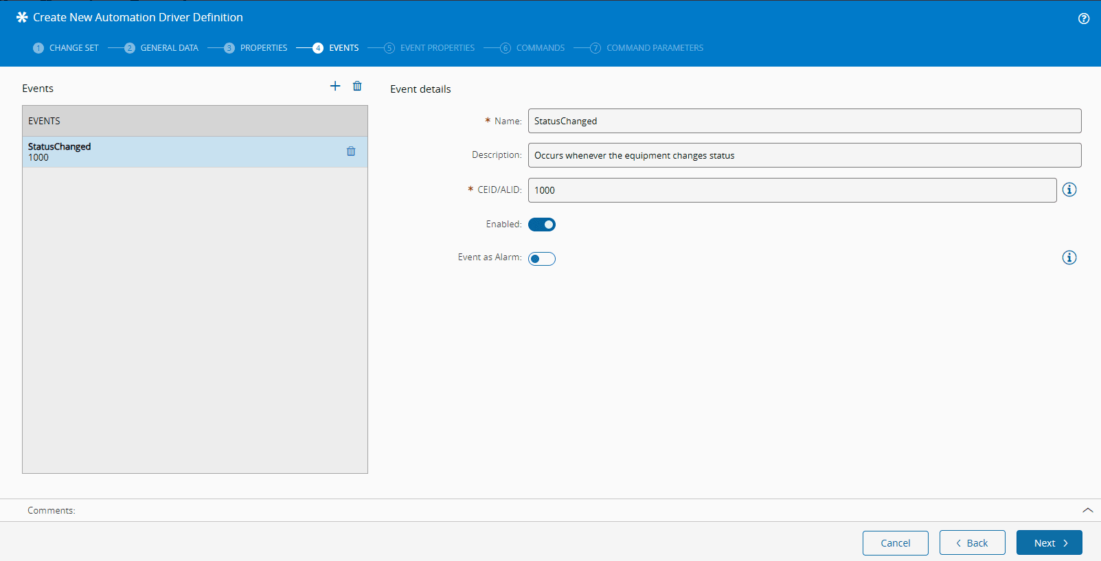 Go to the Settings of the On Equipment Event task and select the event StatusChanged. Select the OK button.