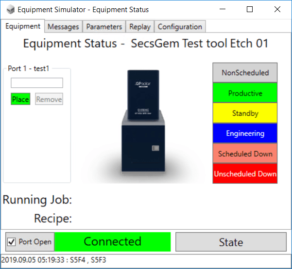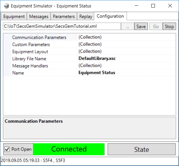 In order to test this integration tutorial, let's open the Secs/Gem Equipment Simulator Tool (you can download it from this location.