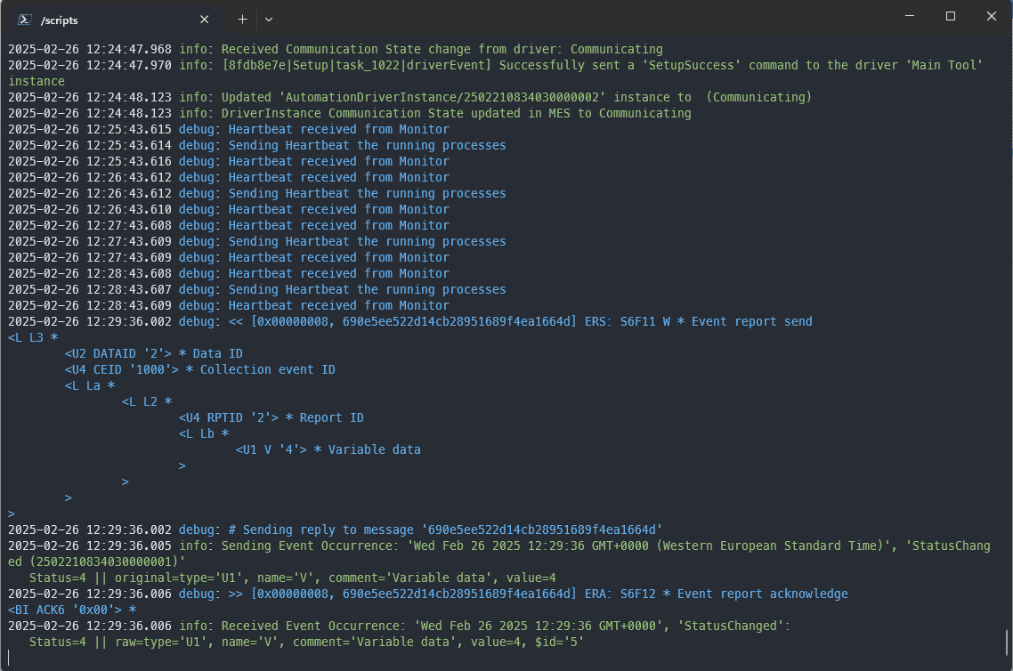 - Stream 6 (S6): Event Reports and Data Collection messages, such as S6F11 (Event Report) and S6F12 (Event Report Acknowledge).