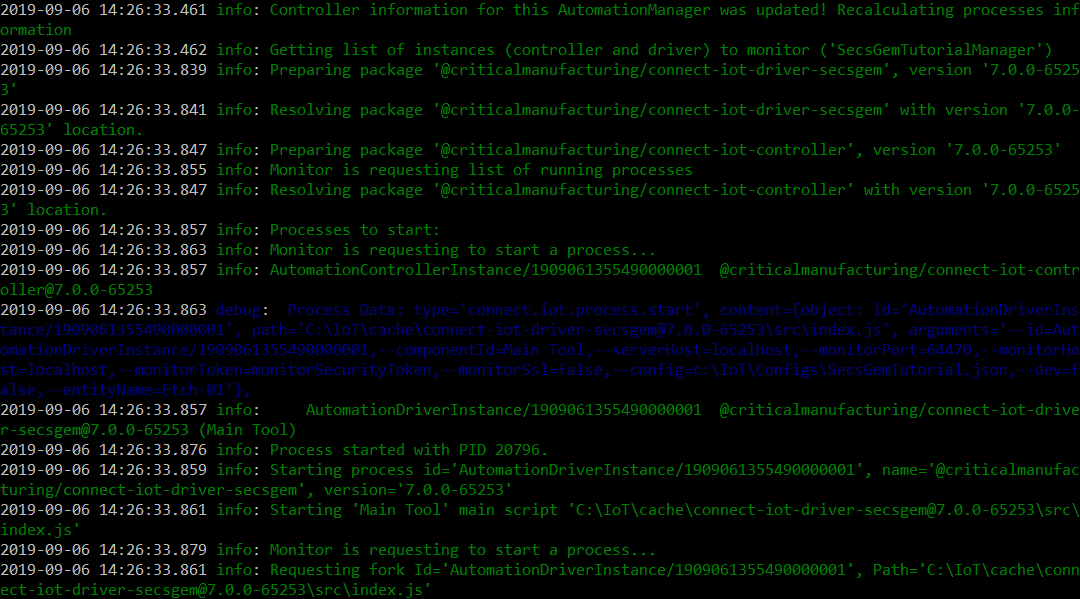 Now check the Automation Manager console. As the Automation Controller information was updated the process now gets again the list of instances to start and monitor. The Automation Monitor then asks the Automation Manager to start the processes for the Automation Controller instance and the Automation Driver instance.