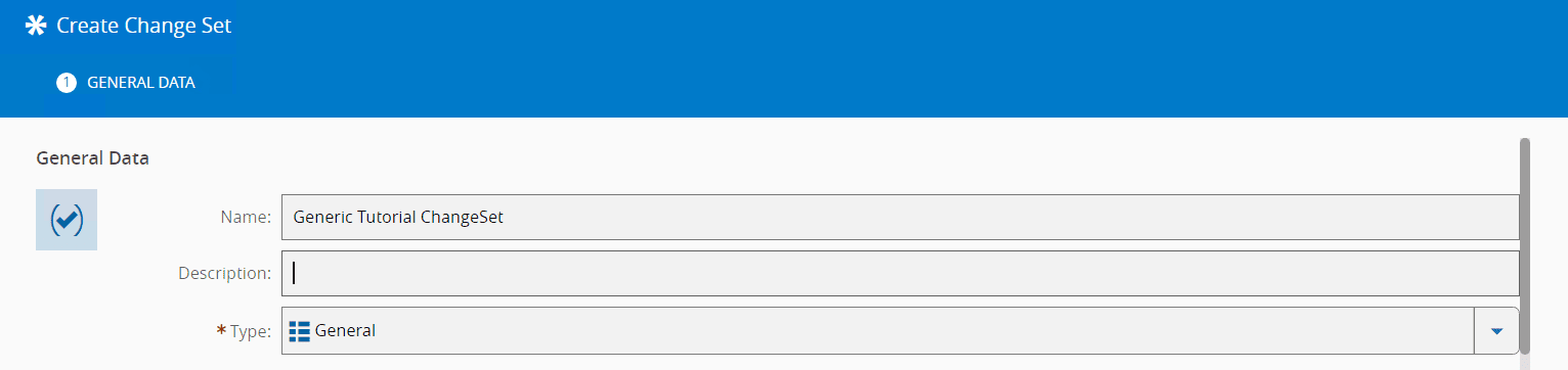 Select the Create button to create a new ChangeSet or select an existing one. If creating a new one, enter the name, type and select the Create button.