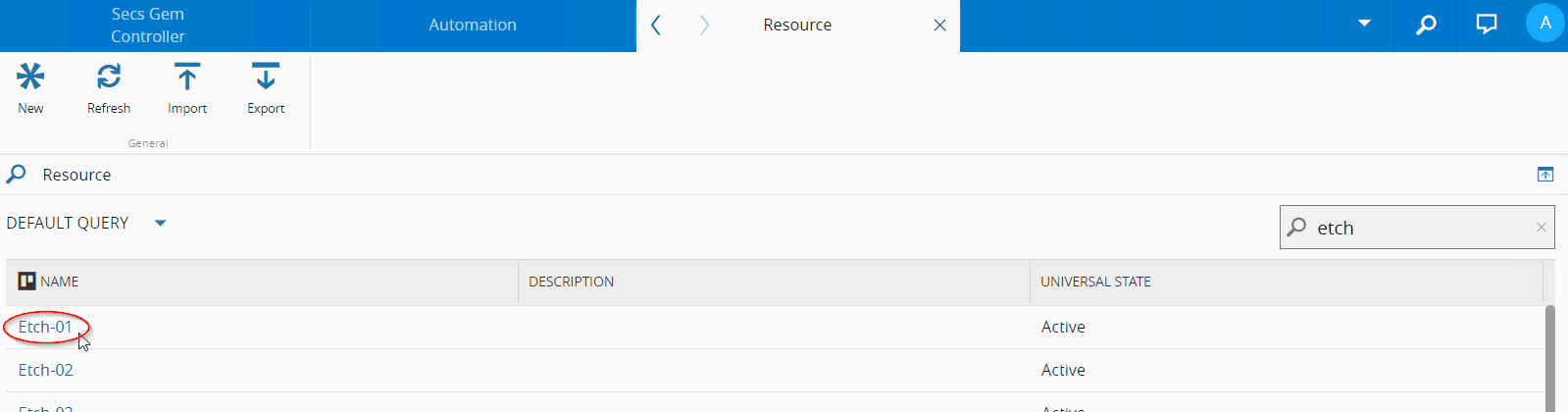 Go to Business Data > Resource and search for the resource. Select over the resource Etch-01to open its details.