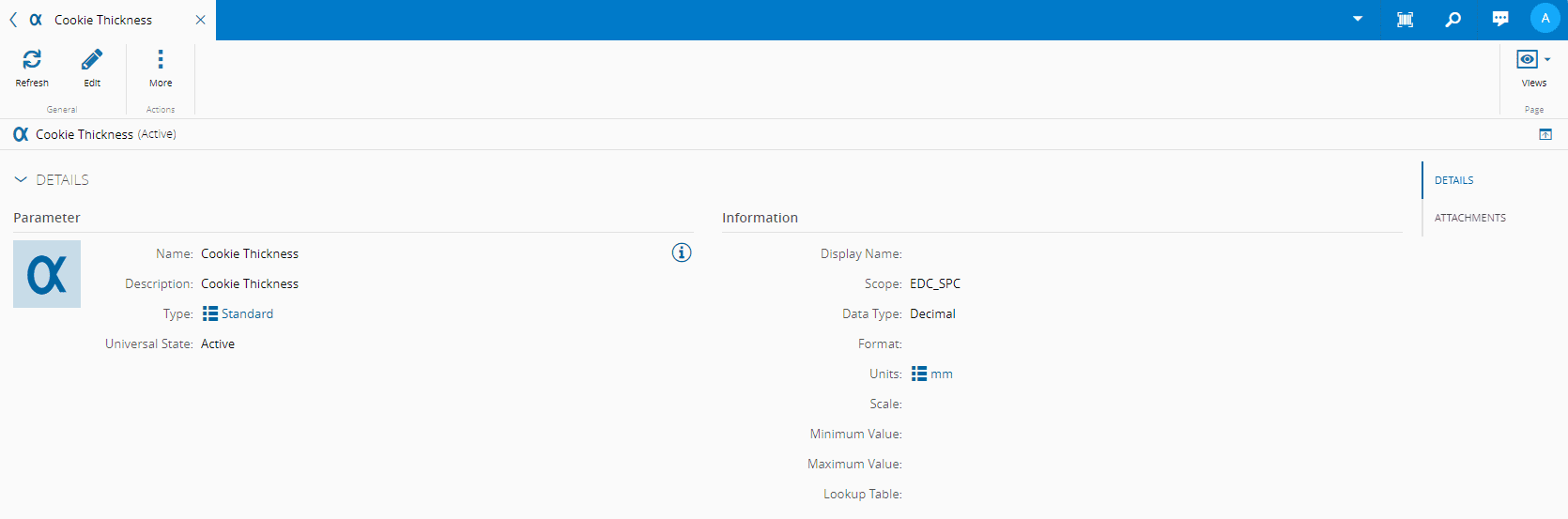 A Parameter is an object which is used to define reusable objects for Data Collection, KPI, SPC, Recipe, Product, and Product Group.