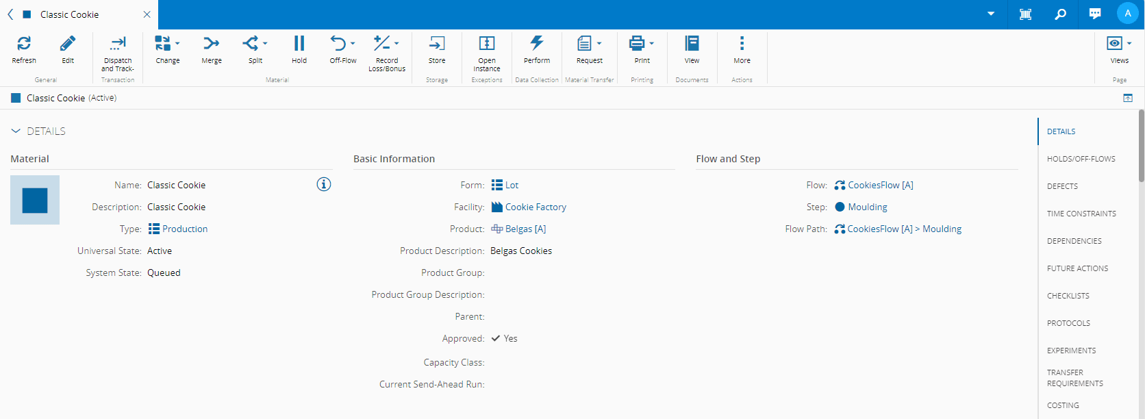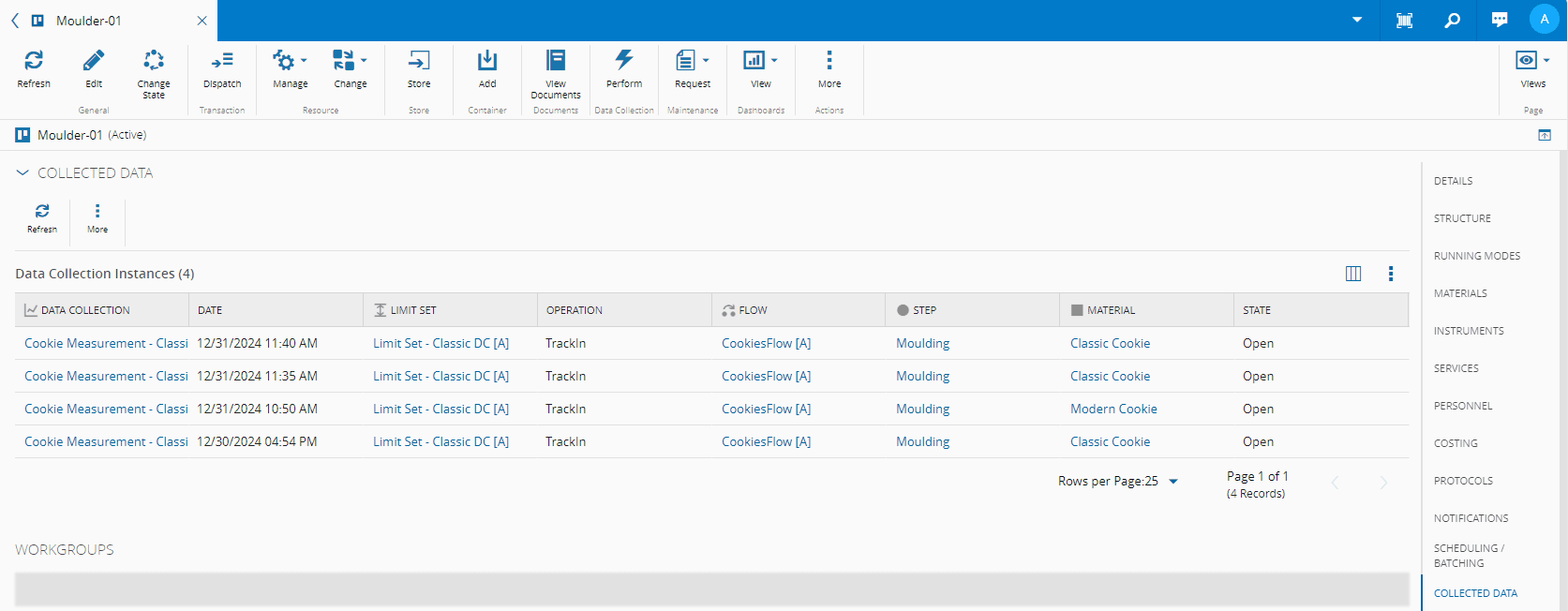 In the Material that we want to collect data, ensure you are at the Moulding Step - the one we configured for the Data Collection Context: