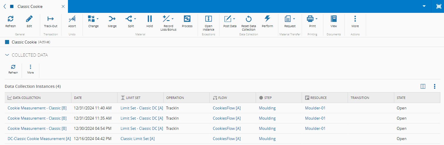 When the data is posted, it becomes available in the Collected Data section of the Material: