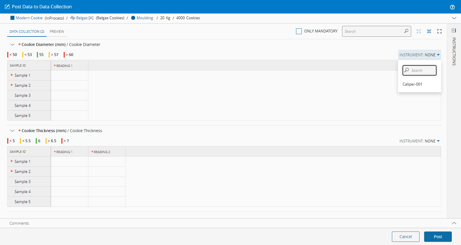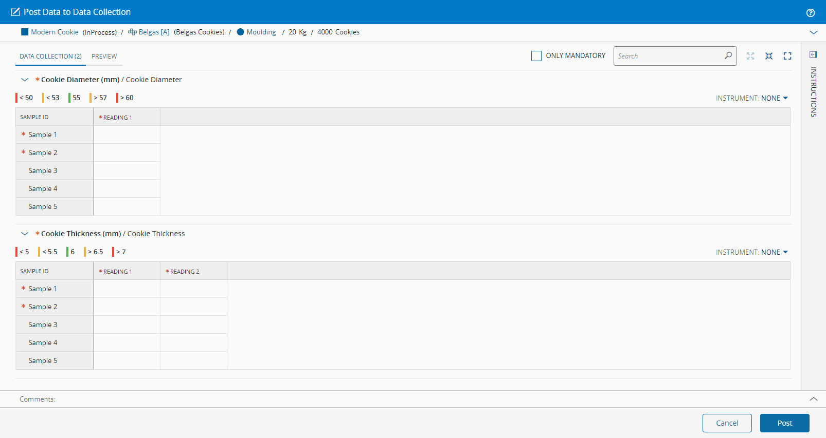 In this example, we will be collecting data at the Moulding Step of the Cookies Flow: