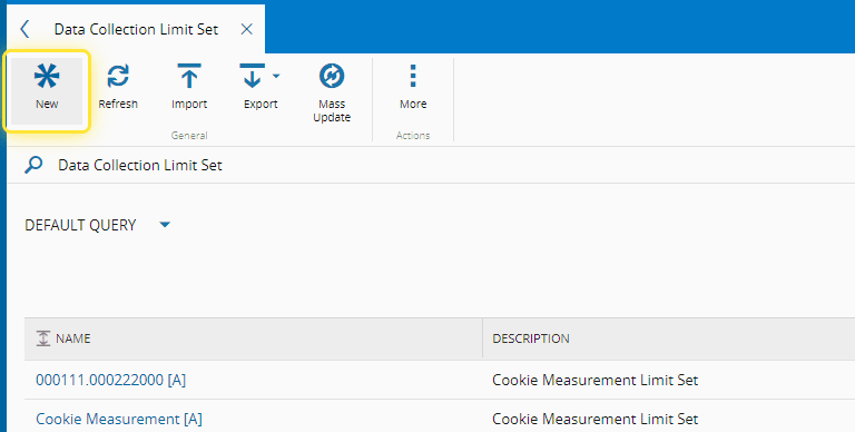 For more information, see Create Data Collection Limit Set - Critical Manufacturing Documentation Portal ⧉