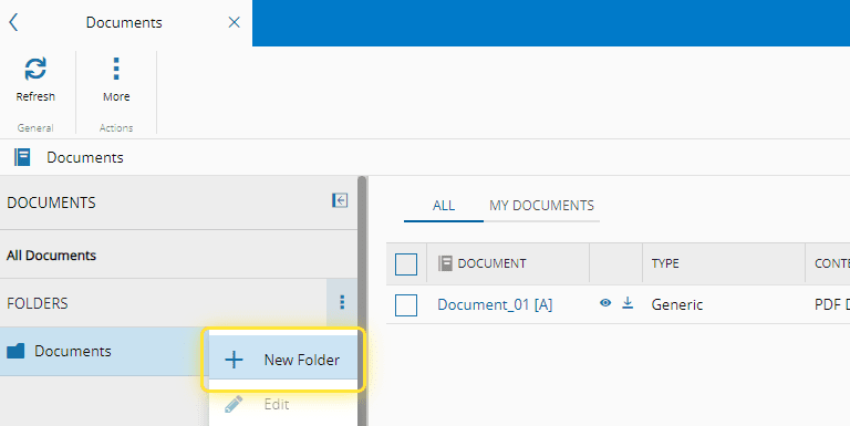 3. When in the Documents menu, select the More icon of the Folders menu, and select New Folder.#