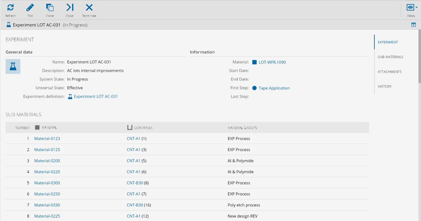 Using the Experiment Management module of Critical Manufacturing MES leads a faster speed of learning, increased visibility, tracking and monitoring of experiments, increased operational efficiency, and the reduction of errors.