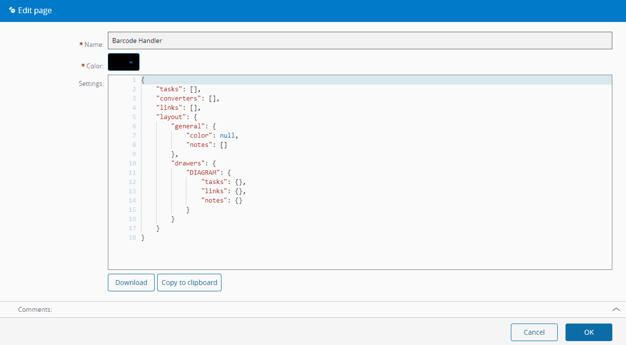 Let us then confirm that we can receive the event sent by the conveyor. First, let's create a new page in the Workflow to keep things nice and tidy. Press the button and the new page, calling it "Barcode Handler".