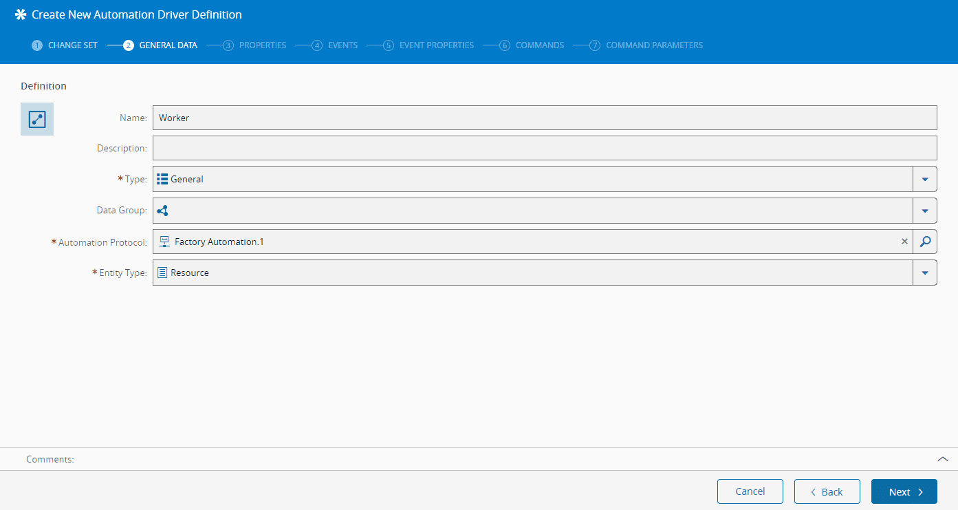 We will now create a new Automation Driver Definition that will form a logical bridge between the protocols. Create one using a meaningful name and using the Factory Automation Automation Protocol created above.