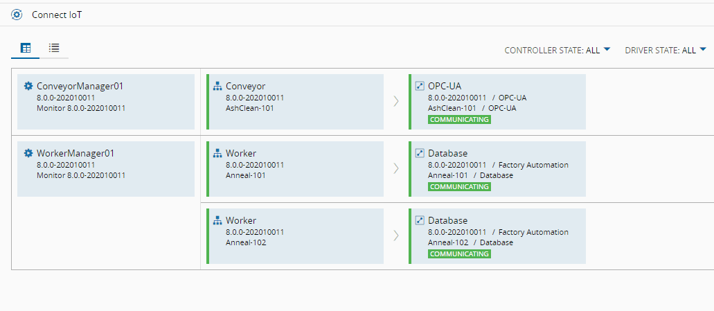 We can also confirm that the connection is running by navigating to the ConnectIoT section of the Automation menu entry.