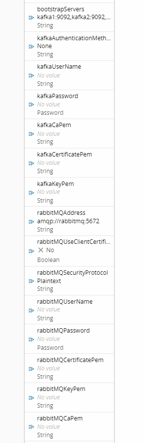 - rabbitMQCaPem - RabbitMQ SSL CA Certificate
