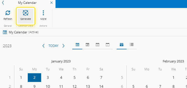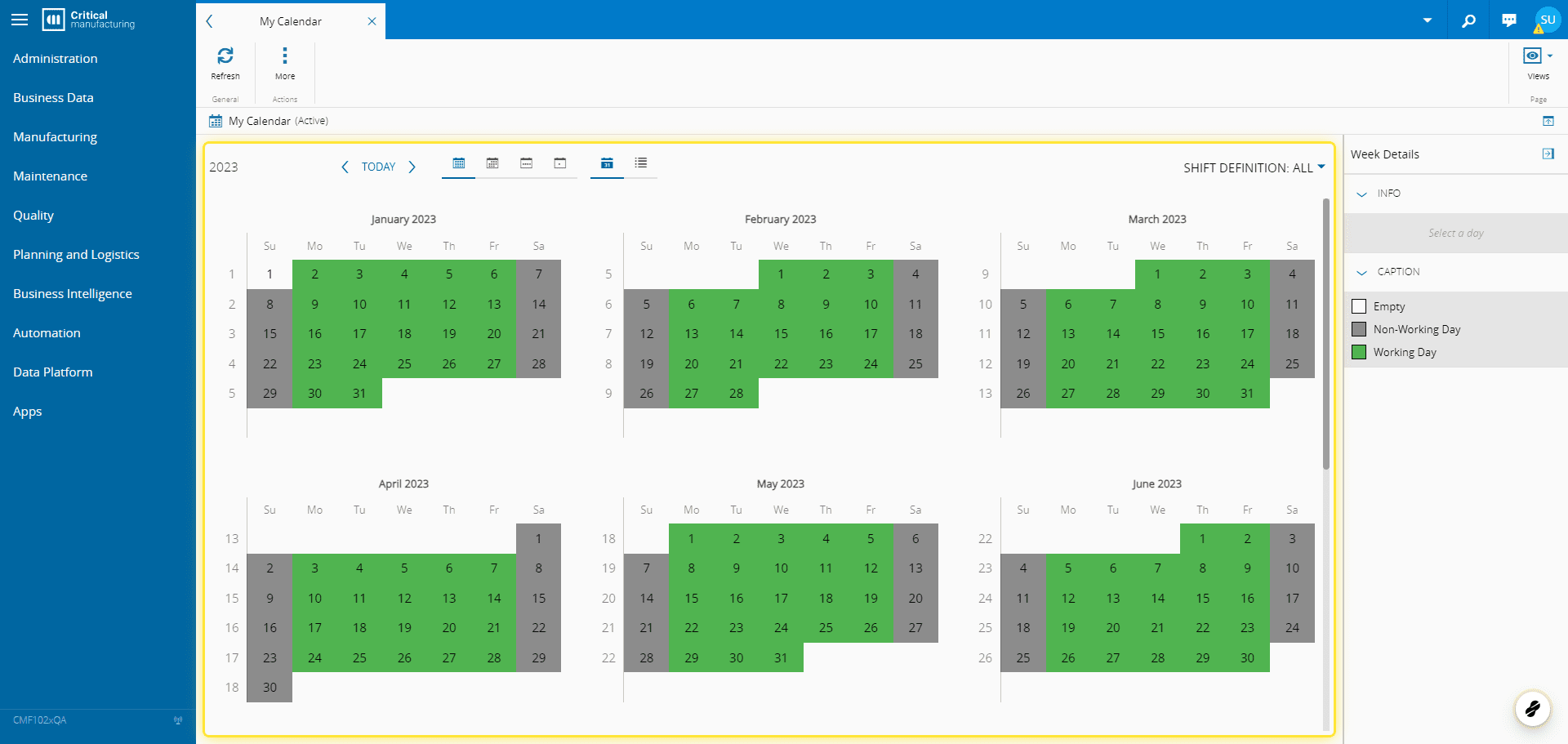For more information, see Generate Calendar Days - Critical Manufacturing Documentation Portal ⧉