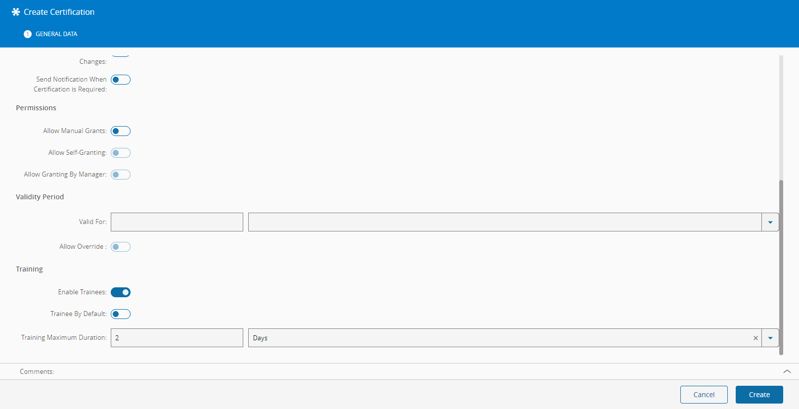 | Allow Manual Grants | Whether you can manually grant the Certification to Employees. |