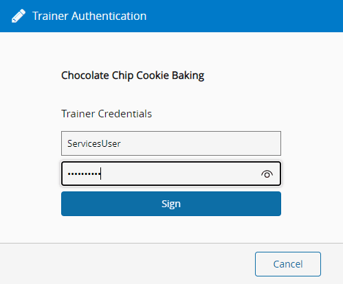 After the signature (biometric, password or PIN) is entered, the Trainee can continue with the process.