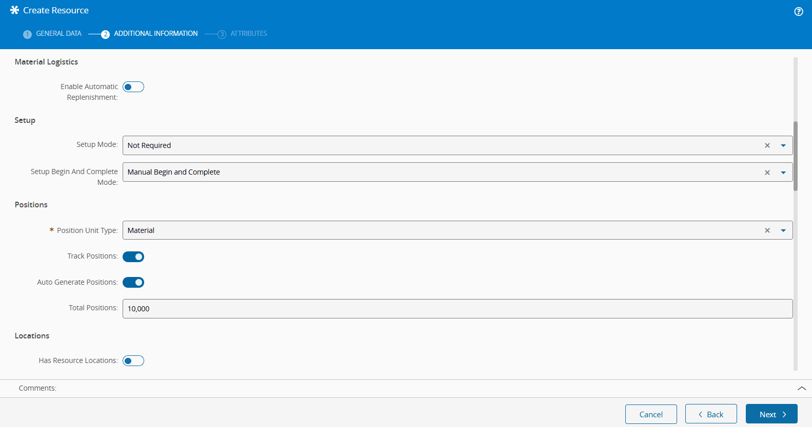 • Position Unit Type - choose Material as the Resource position unit type.