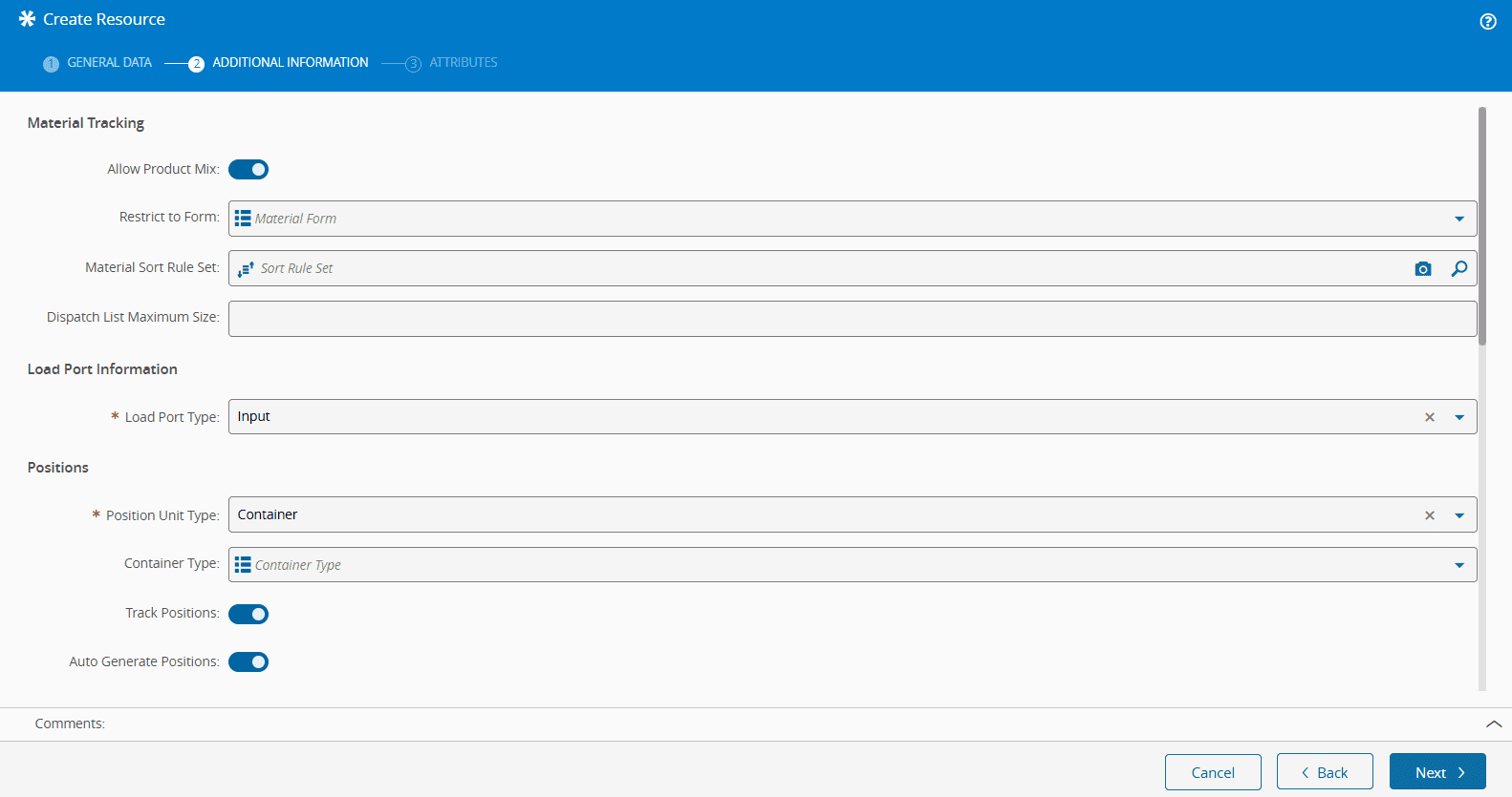 • Position Unit Type - choose Container as the Resource position unit type.