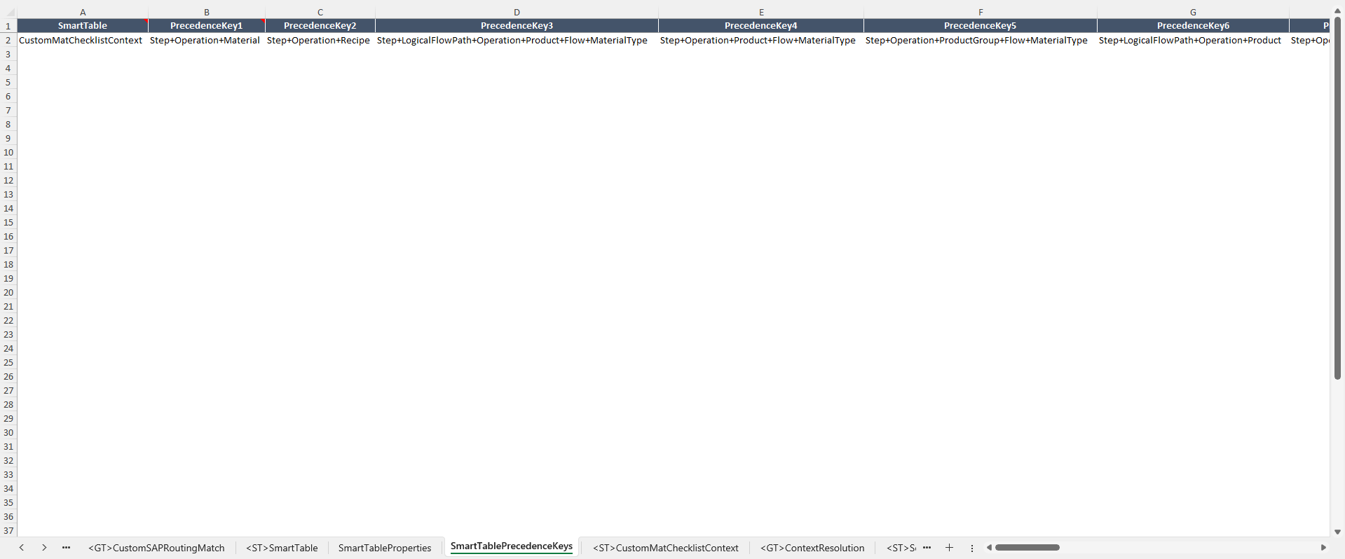Define the required Precedence Keys for the custom Smart Table using the Excel template