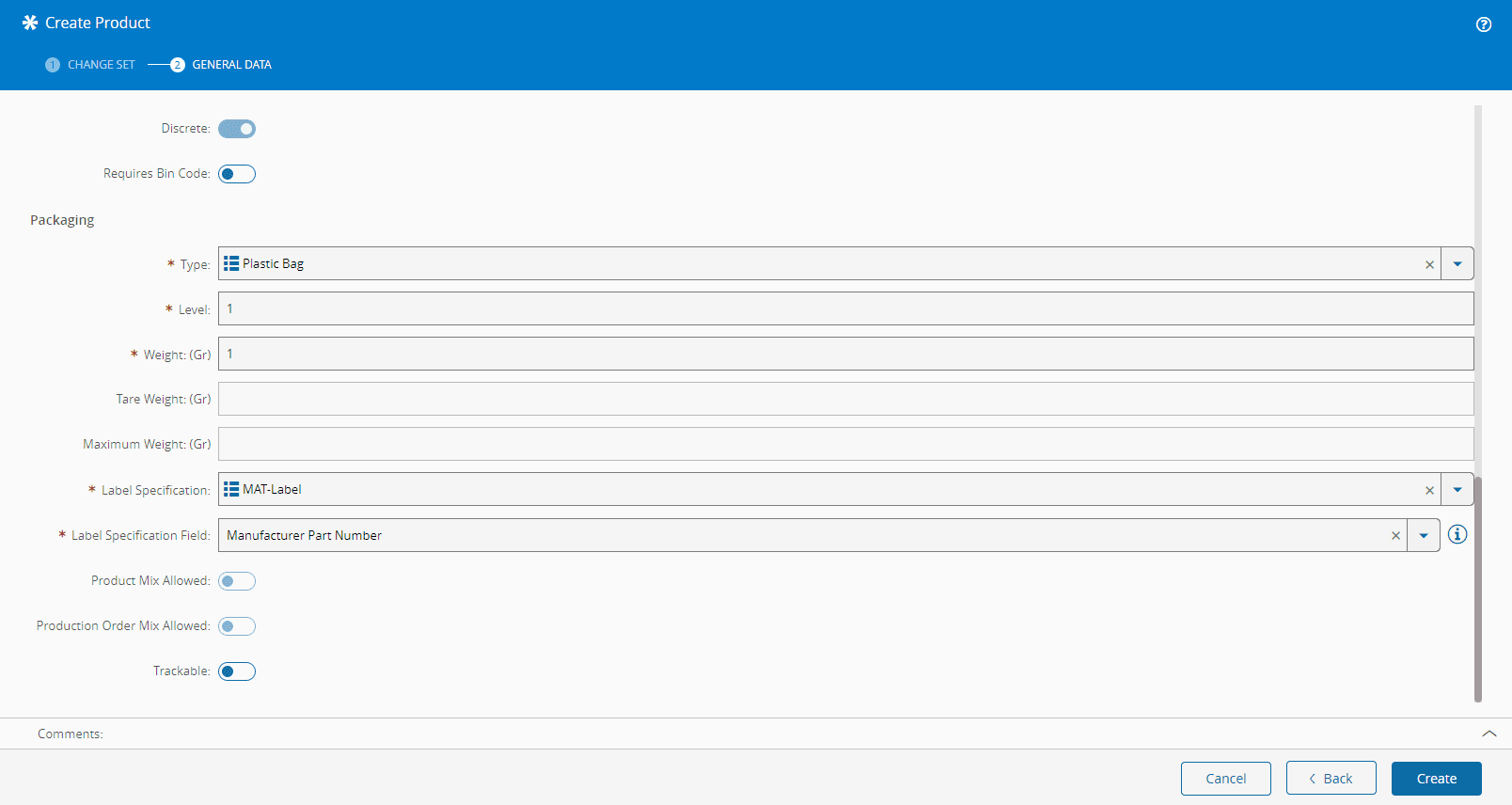 Level 1 is also called product packing and it is typically created on the shop floor. Remember that the contents of packages at this level is always a Material. Therefore, for the purpose of this tutorial, for Level 1, you will pack cookies into individual plastic bags:
