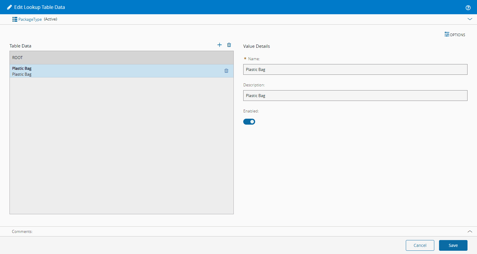| 1 | Lookup Table | Edit the PackageType Lookup Table to create the needed package type. |