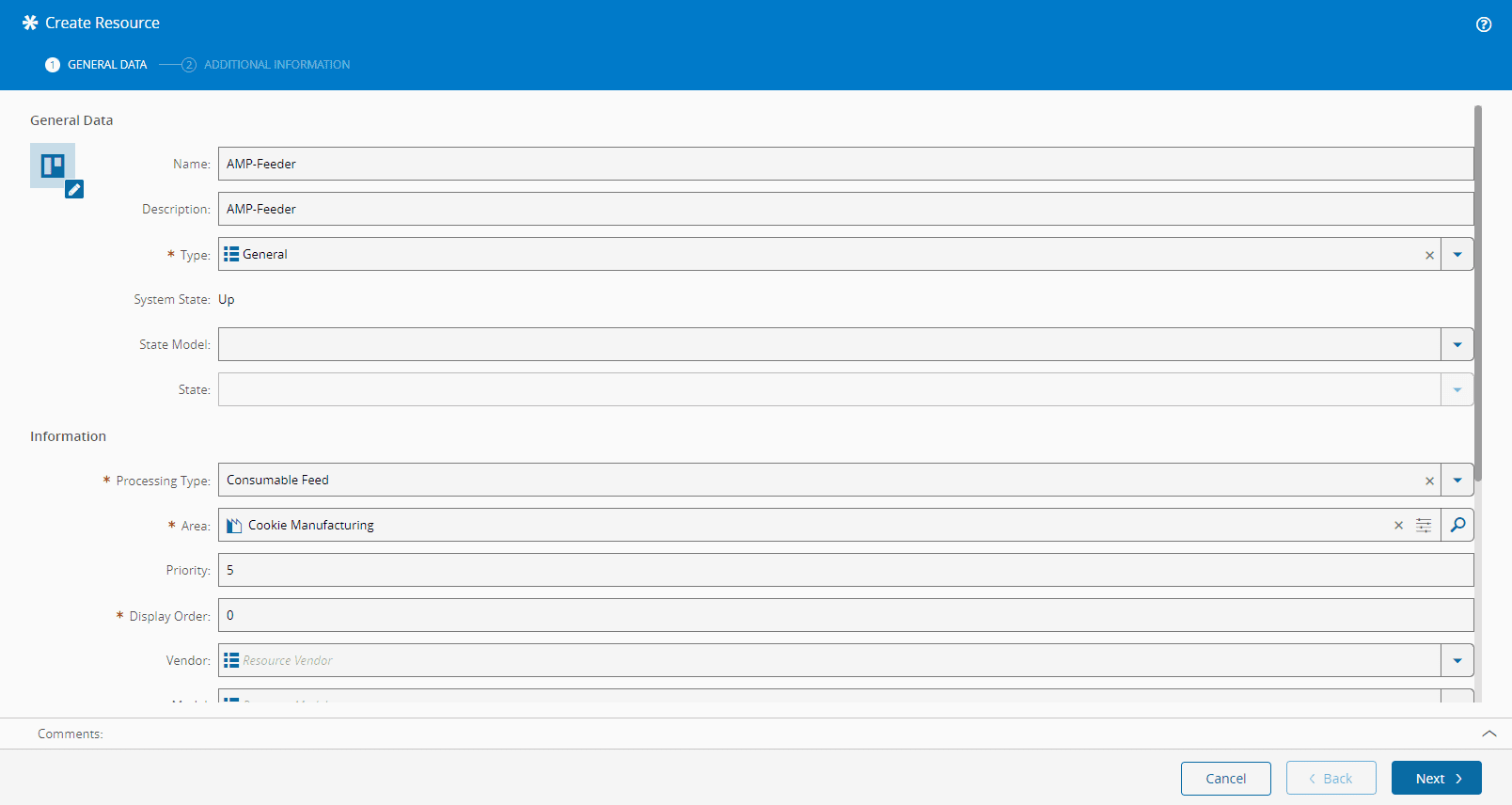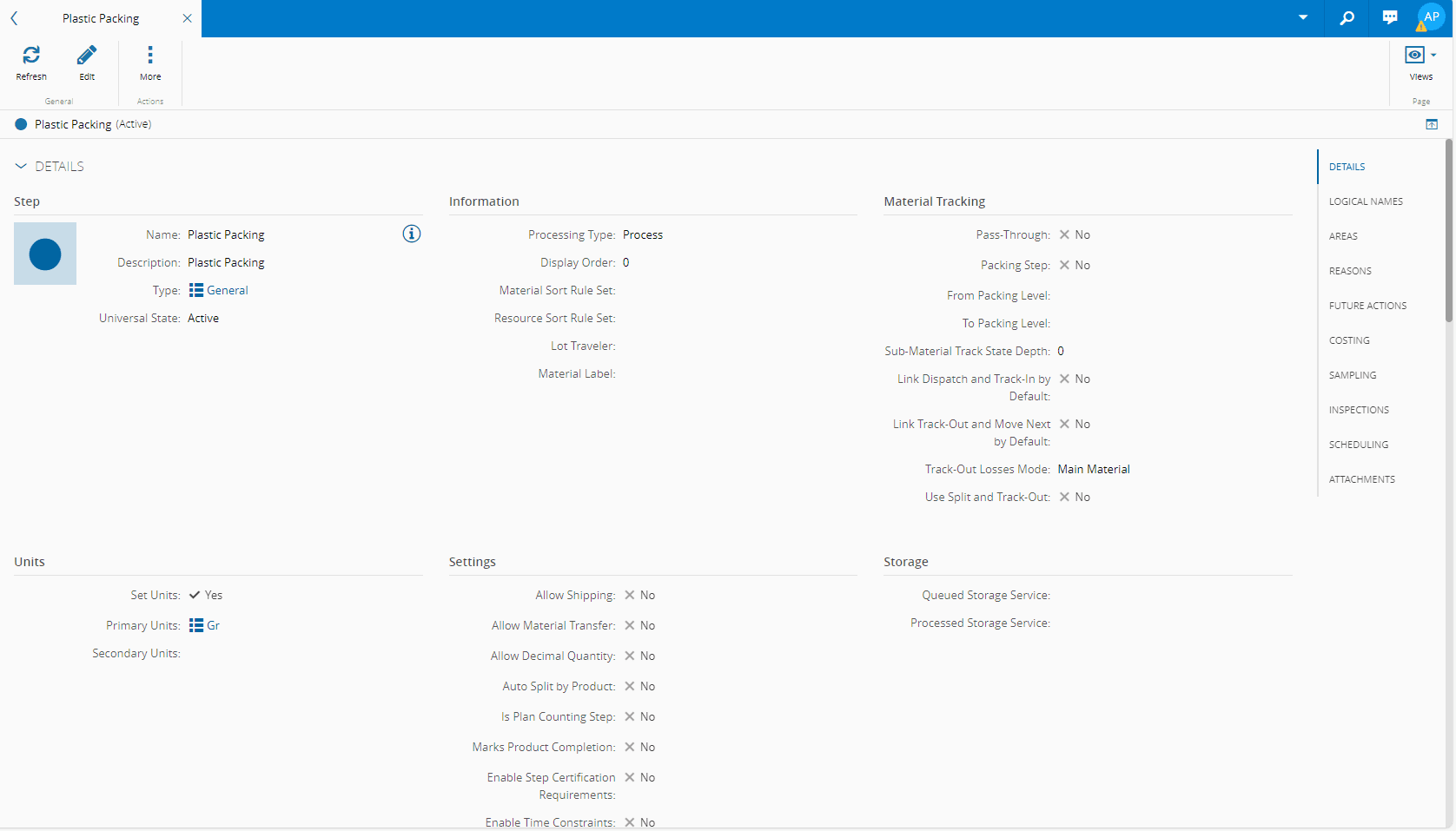 Create a Step of Processing Type Process. Use Grams as the Primary Units, and Cookie Manufacturing for the Area: