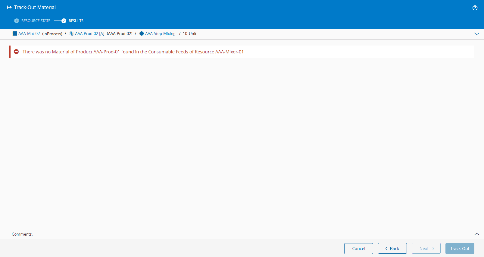 11. When you then select Track-Out, the whole Material will be consumed.