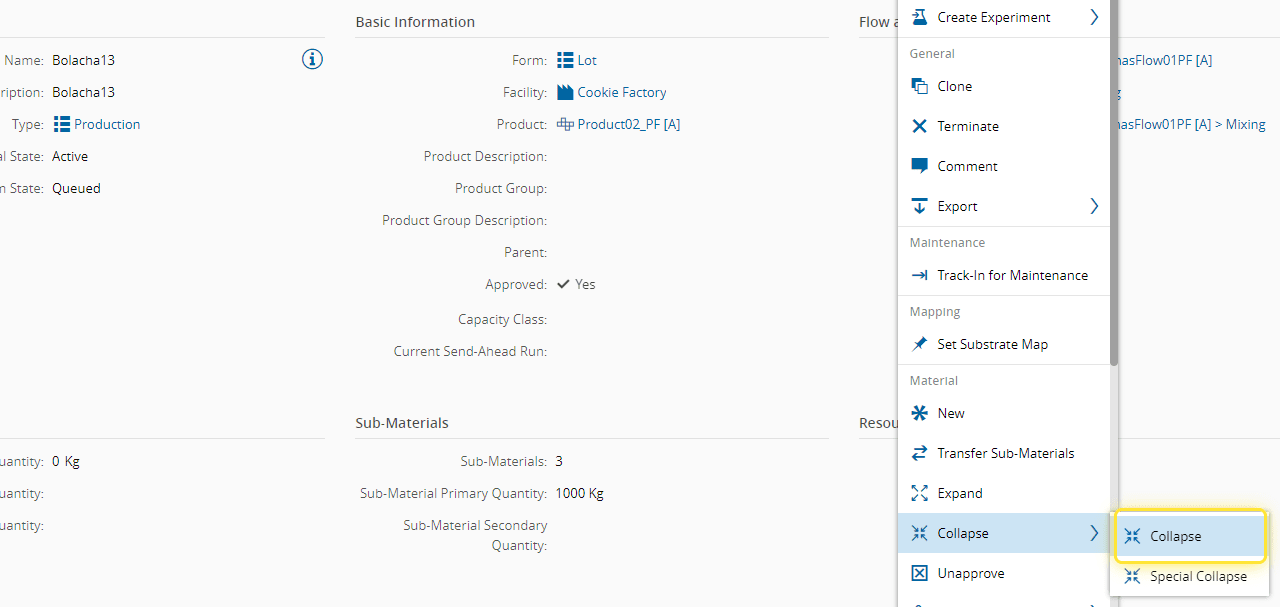 For more information, see Collapse Material - Critical Manufacturing Documentation Portal ⧉