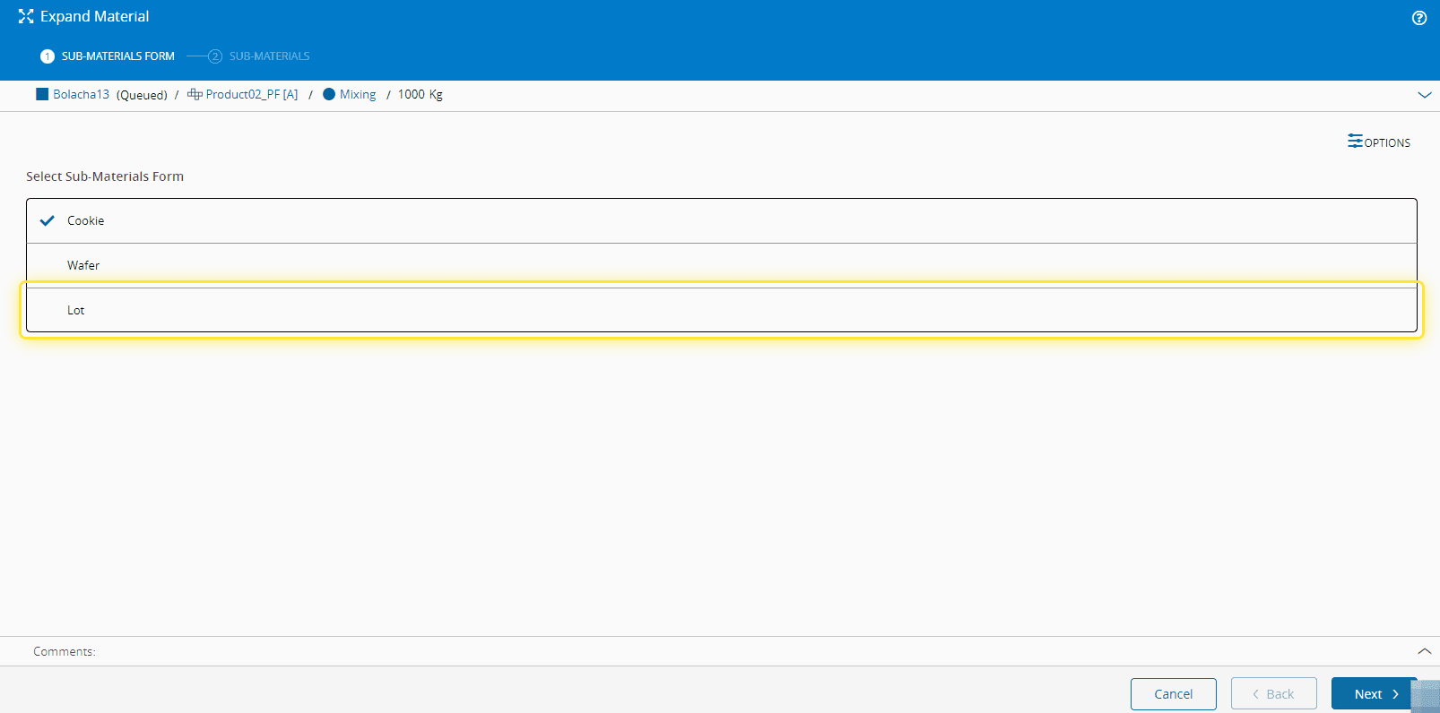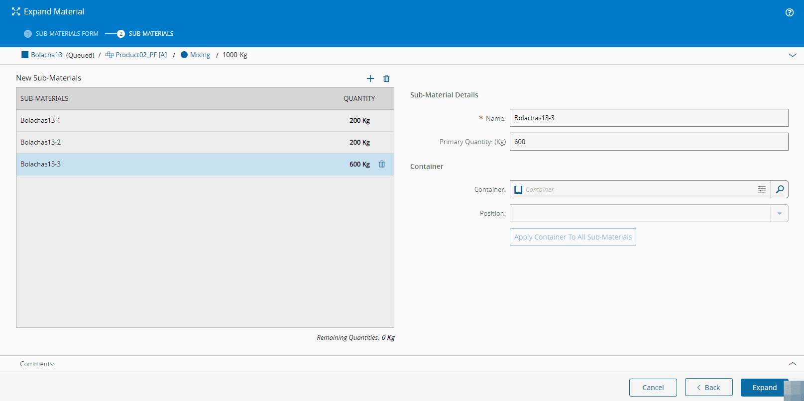 For more information, see Expand Material - Critical Manufacturing Documentation Portal ⧉