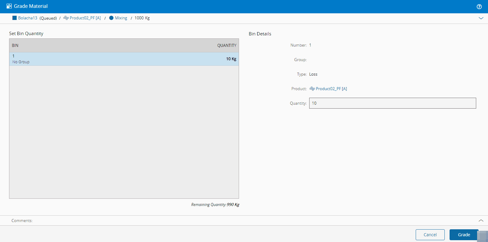 For more information, see Grade Material - Critical Manufacturing Documentation Portal ⧉