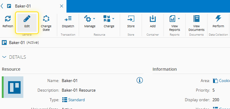 How to enable a Resource for Recipe Management# 1. Go to the Business Data menu.# 2. Select the Resource entity.# 3. Select the Resource you want to manage.# 4. Select Edit.# 5. Open the Additional Information tab.# 6. Enable the Recipe Management option.# 7. Select Save.#