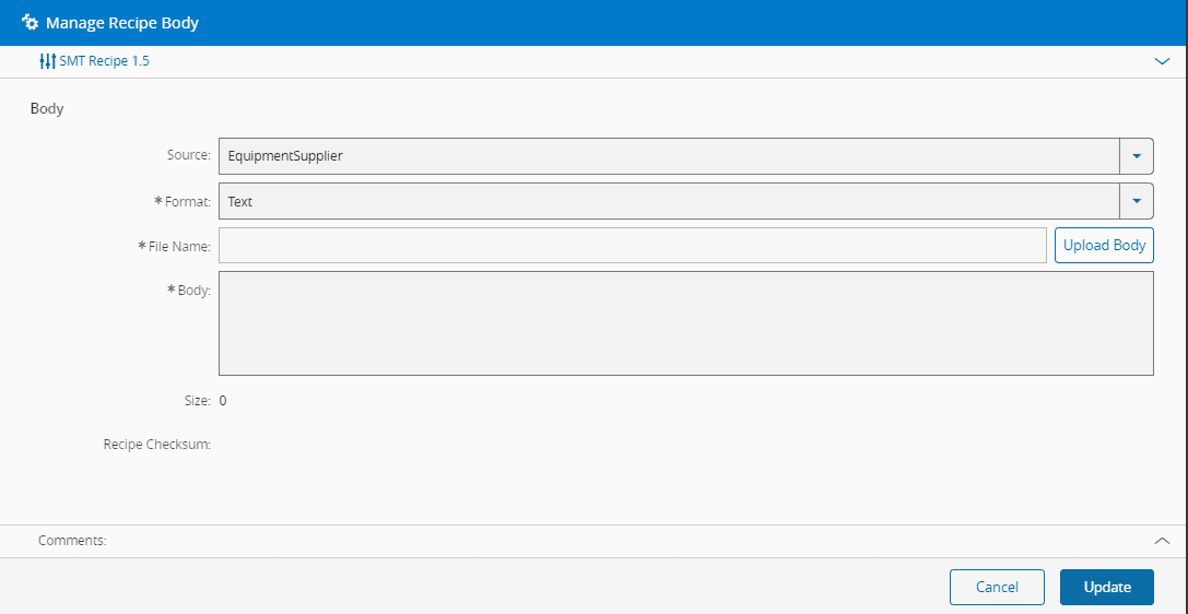 | Recipe Checksum: | It is used to ensure Recipe integrity since Recipes are often locally modified at the equipment. |