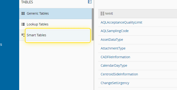 3. Select the Smart Tables sub-menu.#