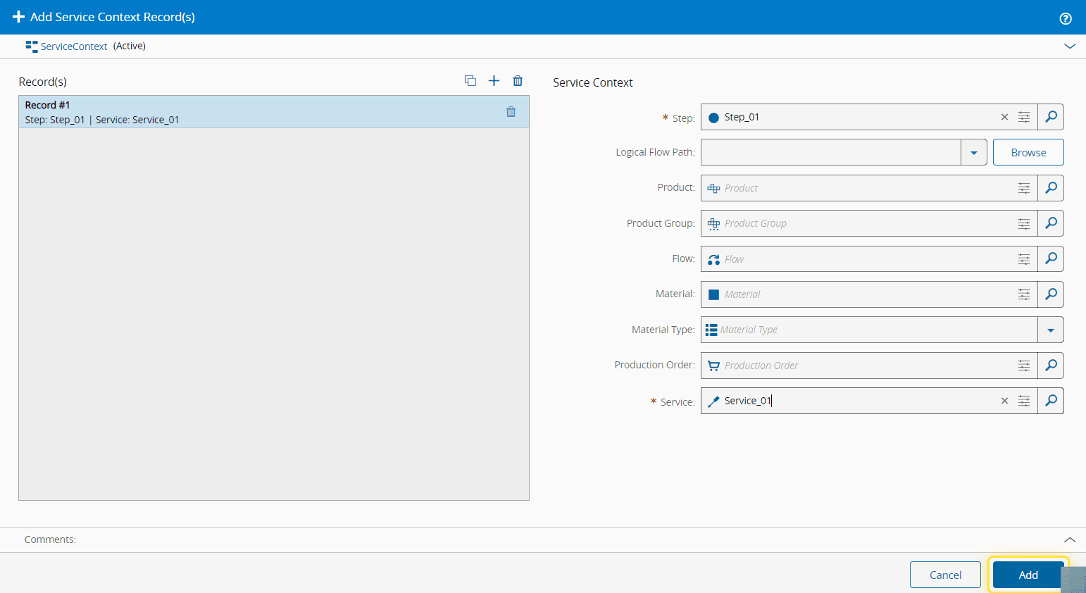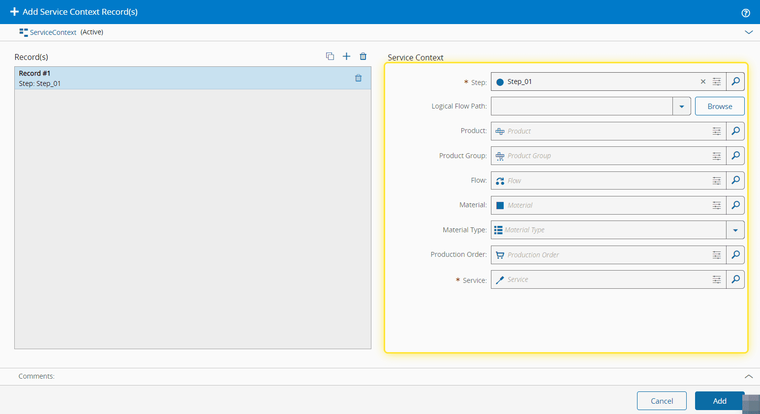 6. In the Add Service Context wizard, connect each Step with a designated Service.#
