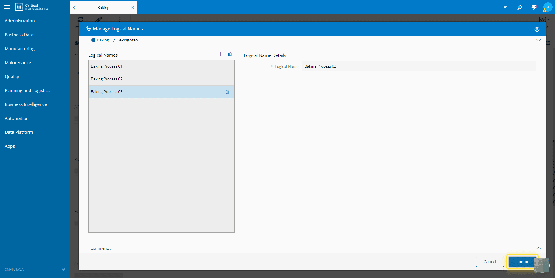 For more information see, Manage Step Logical Names - Critical Manufacturing Documentation Portal ⧉