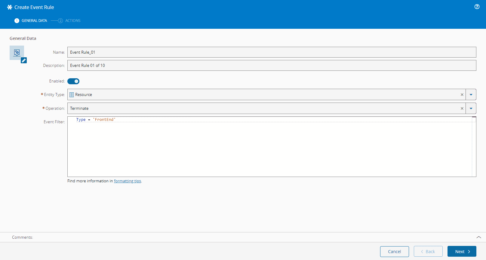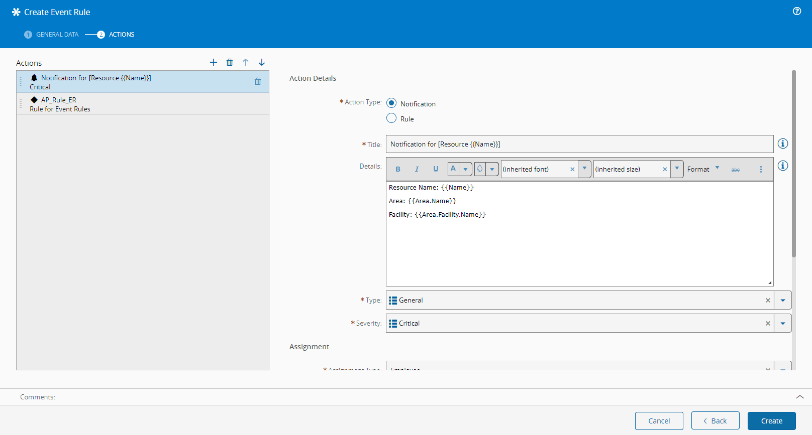 Event Rules is an Administration entity that allows you to create an Event Rule with actions of type Notification or Rule. The created actions will only be executed when the event is triggered.
