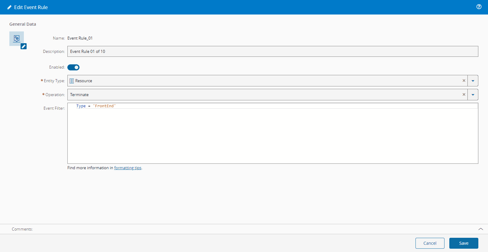 The Edit Event Rule wizard is called from the Event Rule page within the Administration Group.