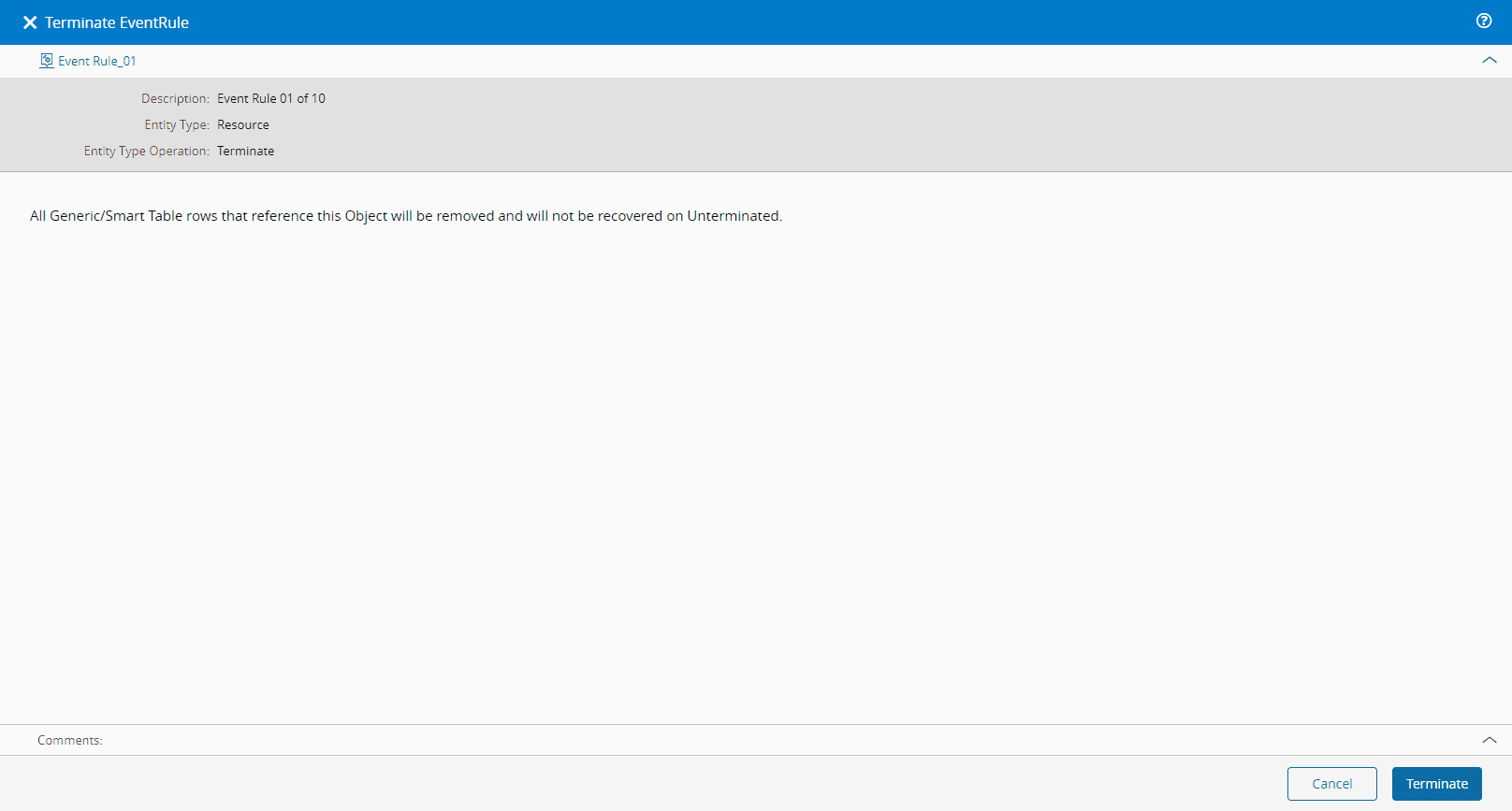 The Terminate Event Rule wizard is called from the Event Rule page within the Administration Group.
