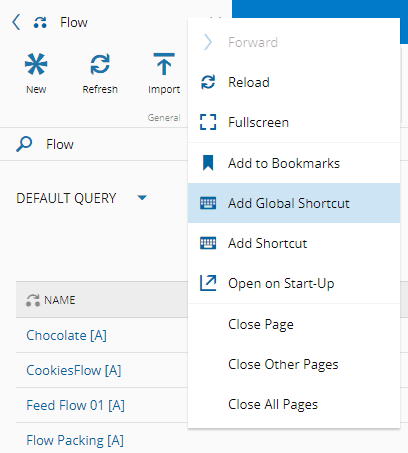You can add Global Shortcuts by using the Manage button on the top ribbon or by right-clicking on the tab of the page and selecting Add Global Shortcut (where the information will be displayed in the Action Details column) followed by adding the desired keyboard shortcut combination: