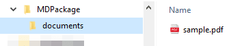 For the system to be able to access and process the sample.pdf file, it must be placed inside a documents folder, which will have to be located in the root of the .zip file or at the same level as the .xlsx file: